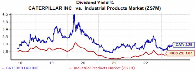 And to top it off, Caterpillar carries a favorable growth profile, with estimates calling for a nearly 30% jump in earnings in the current fiscal year (FY23) on 10% higher revenues.