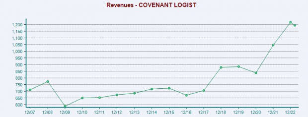 The upward trend in earnings estimates is one of the most powerful forces impacting stock prices and this is another reason to believe that acquiring Lew Thompson could certainly pay off. The acquisition is not having a dismal impact on Covenant’s bottom line in the short term and should increase its earnings potential in the long term.