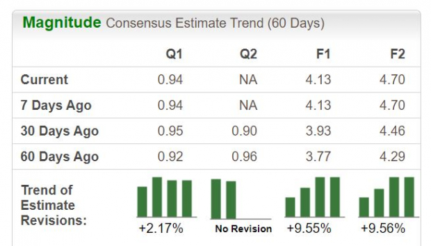 Despite the recent completion of the Lew Thompson acquisition, Covenant’s earnings estimates have trended higher over the last 60 days.