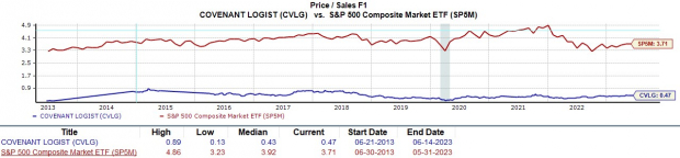 More intriguing, investors are only paying $0.47 for every $1 the company makes. Covenant’s price-to-sales ratio of 0.47X is also a distinct discount to the industry’s 1.05X average and the benchmark’s 3.71X.