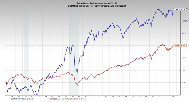 CMI shares have crushed the S&P 500 over the last 25 years, up roughly 1,700% vs. 390%. More recently, Cummins stock has climbed nearly 90% in the past five years. CMI stock is up just 4% in 2023. That said, Cummins has roared back recently, up around 20% since the start of June after it found support right around its 200-week moving average.