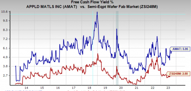 AMAT has an FCF yield of nearly 6%, which is well above the industry average of 2.9%. The company also shows a history of high free cash flows, growing the number by CAGR of 16.2%, and extremely impressive growth rate.
