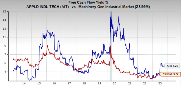 In the chart below we can see that AIT has an FCF yield of 5.25%, which is above the industry average of 3.5% and a relatively high percentage in general. Furthermore, AIT has shown that it has maintained a history of positive free cash flow indicating financial discipline. The company has grown its annual FCF by a CAGR of 12.5% annually.
