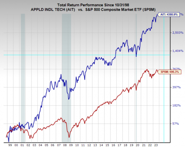 Applied Industrial Technology currently enjoys a Zacks Rank #1 (Strong Buy) rating, indicating upward trending earnings revisions and improving the near-term odds of a move higher in the stock. However, AIT stock has put up incredible returns over the long-term as well.