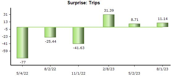 As shown below, the company has consistently exceeded the Zacks Consensus Estimate for quarterly Trips as of late. Regarding the upcoming release expected on November 7th, we currently expect Uber to post Trips of 2.4 billion, reflecting a change of +21% from the same period last year. As reflected by these expectations, business momentum looks set to continue.