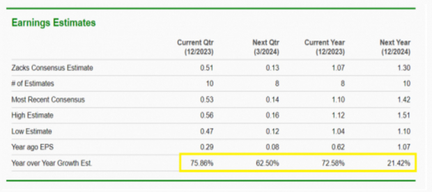 US equities are in the middle of a robust bull market. In my experience, bull markets favor growth stocks as momentum investors climb aboard, speculators are willing to take on more risk, higher multiples are favored, and investors become hyper-focused on innovation and growth opportunities rather than value and stability. With Zacks Consensus Estimates anticipating year-over-year earnings growth of more than 60% over the next three quarters, PINS fits the bill of a classic quality growth stock.