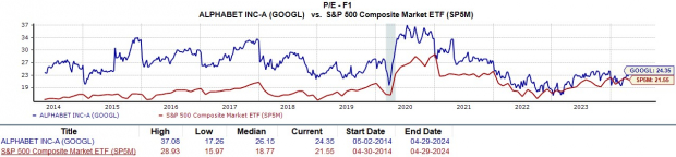 However, what also stands out about Alphabet is that outside of Meta Platforms, it is the most reasonably valued of the Mag Seven in terms of P/E valuation at 24.3X forward earnings and close to the S&P 500’s 21.5X.