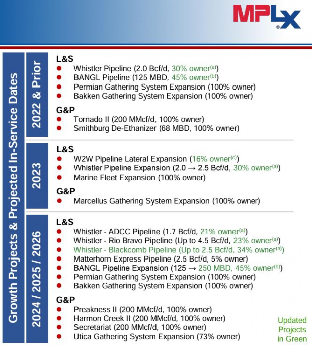 MPLX is poised to deliver additional stable and predictable earnings through several key growth projects, either already operational or scheduled for completion by 2026. This project pipeline is expected to not only ensure steady cash flows but also drive attractive returns for unit-holders.