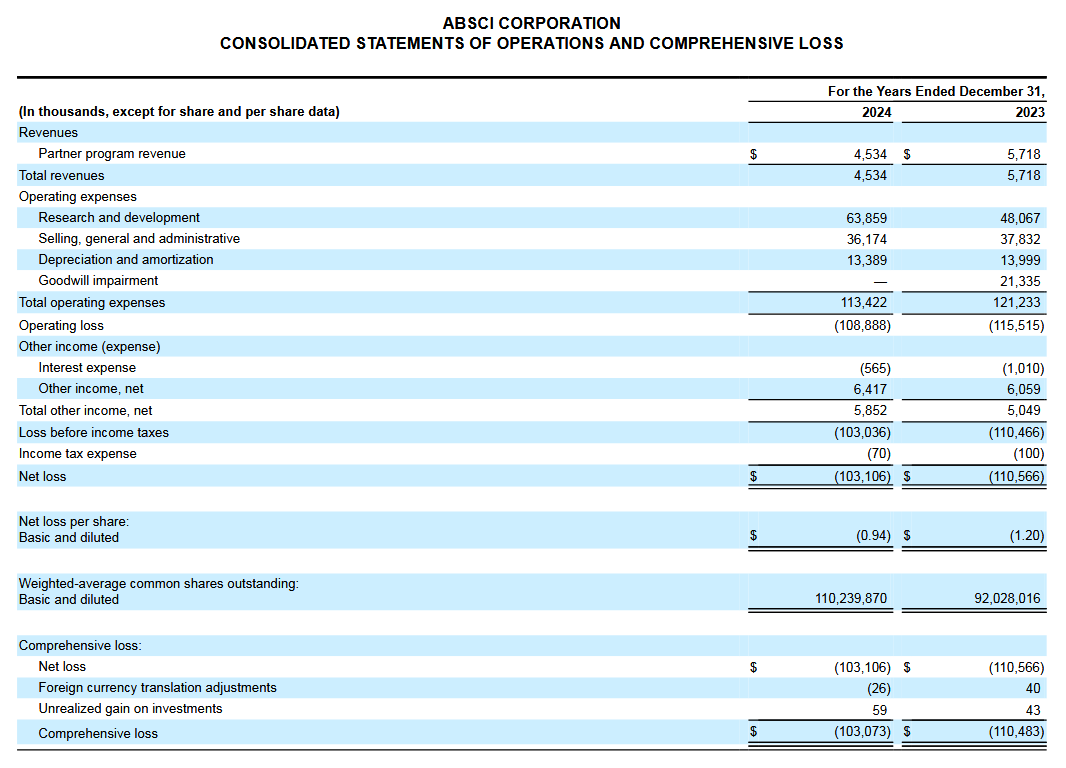 Latest 10-k report:  https://investors.absci.com/static-files/7d4e8402-0f06-4bfb-b883-06e69fe565a1