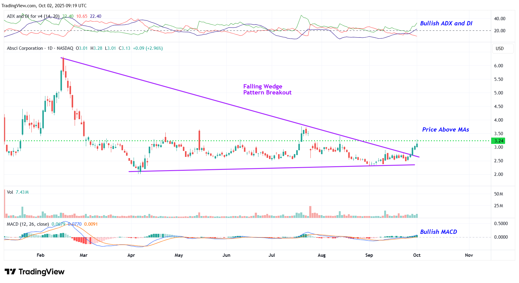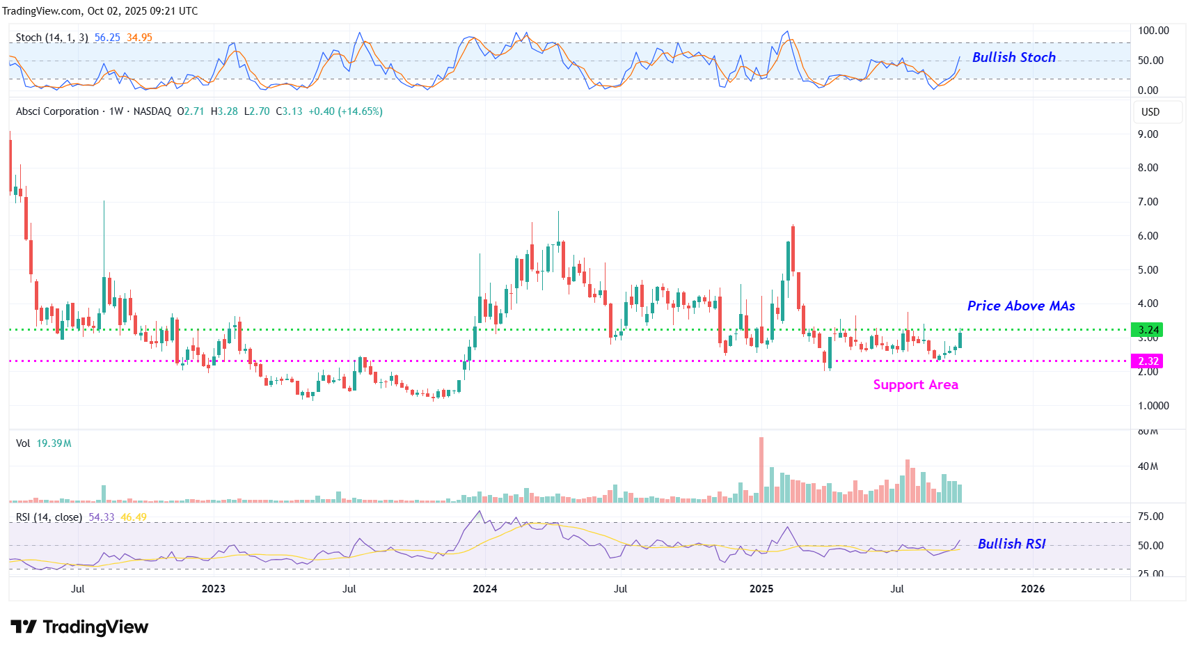 Buy Levels: If you want to get in on this trade, the ideal buy level for ABSI is above the price of $3.25.