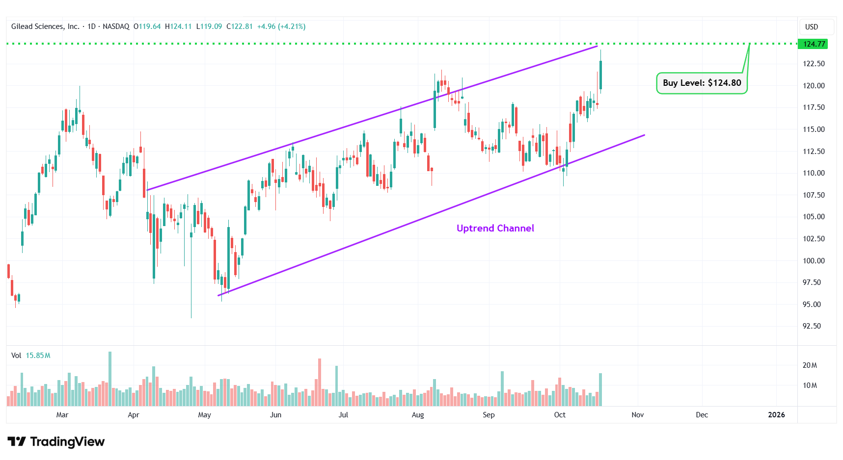 2 | Gilead Sciences, Inc. | NASDAQ: GILD | $122.81 | $124.80 | Uptrend Channel |