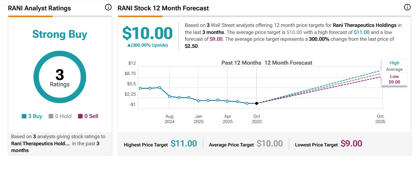 Analyst Consensus: As per TipRanks Analytics, based on 3 Wall Street analyst offering 12-month price targets for RANI in the last 3 months, the stock has an average price target of $10.00, which is nearly 300% upside from current levels.