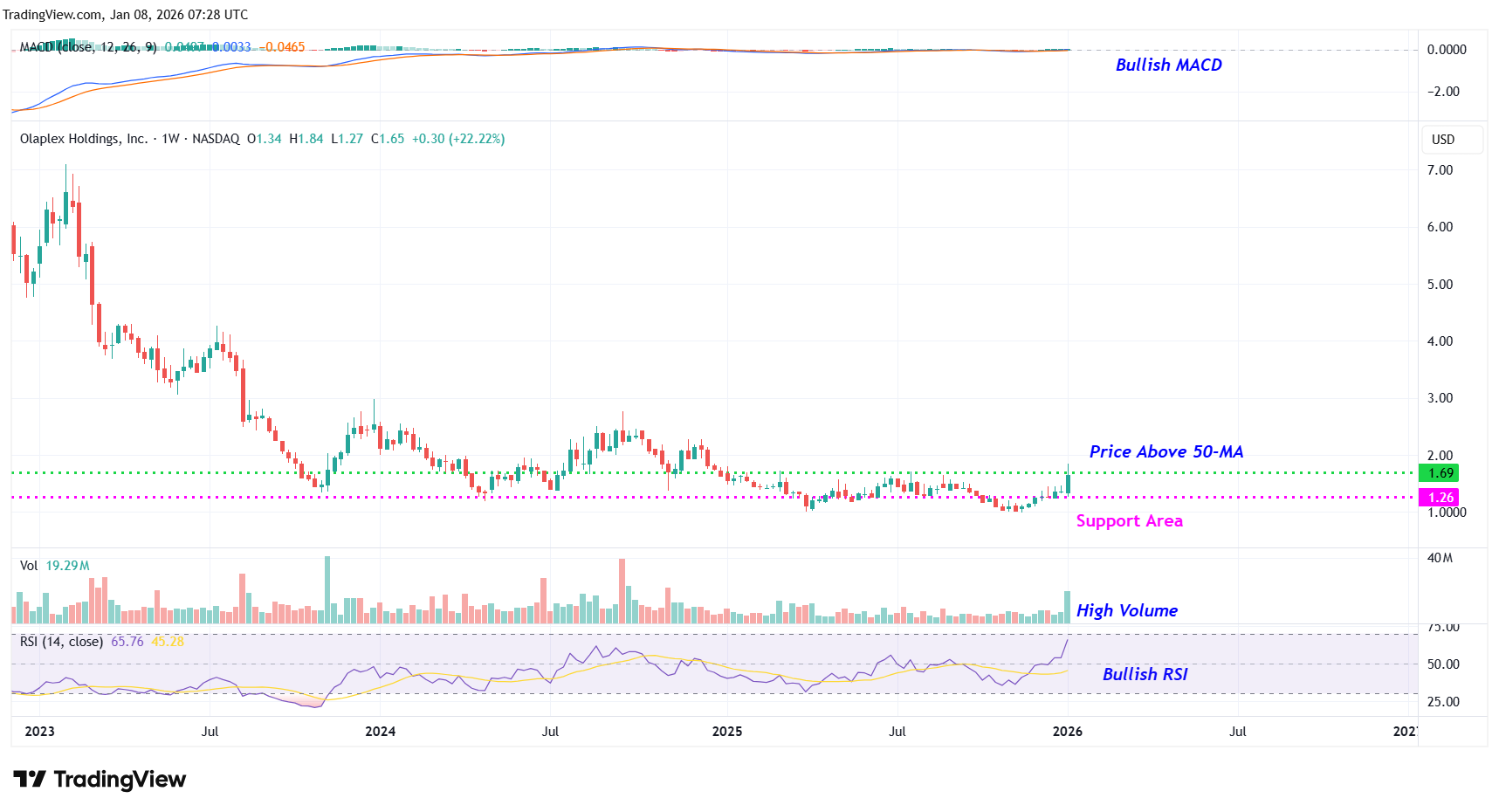 Buy Levels: If you want to get in on this trade, the ideal buy level for OLPX is above the price of $1.70.