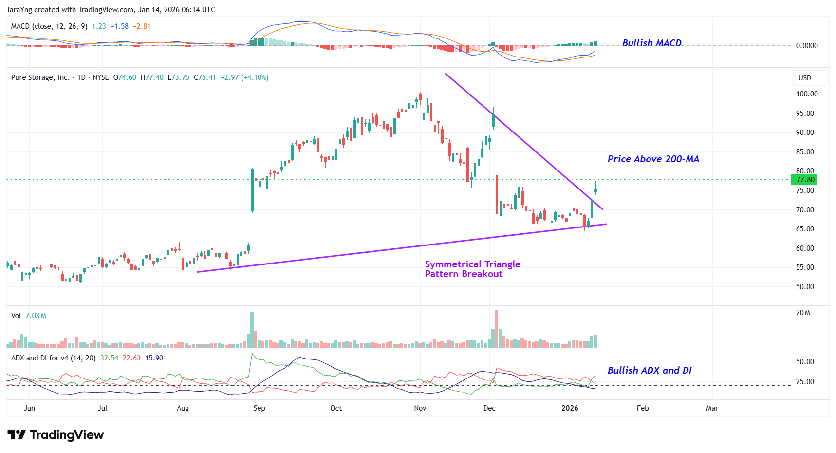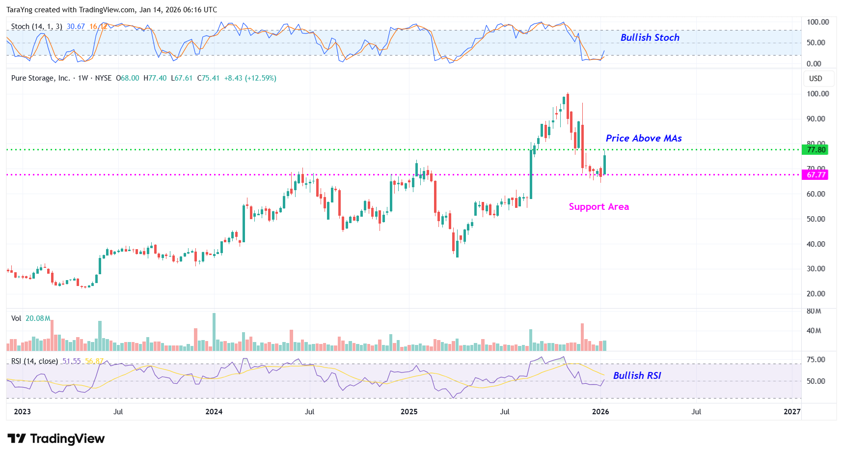 Buy Levels: If you want to get in on this trade, you can purchase shares of PSTG above the price of around $77.80.