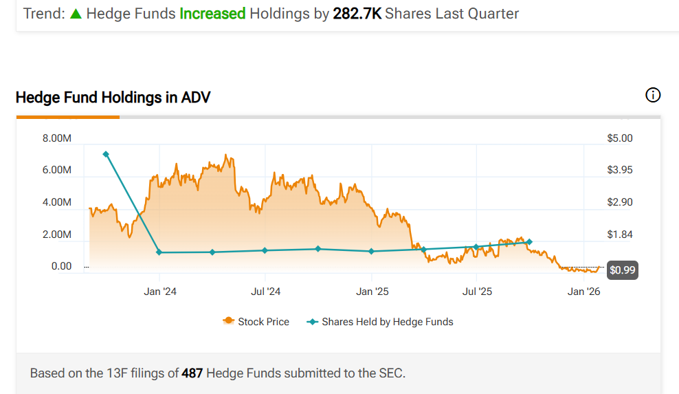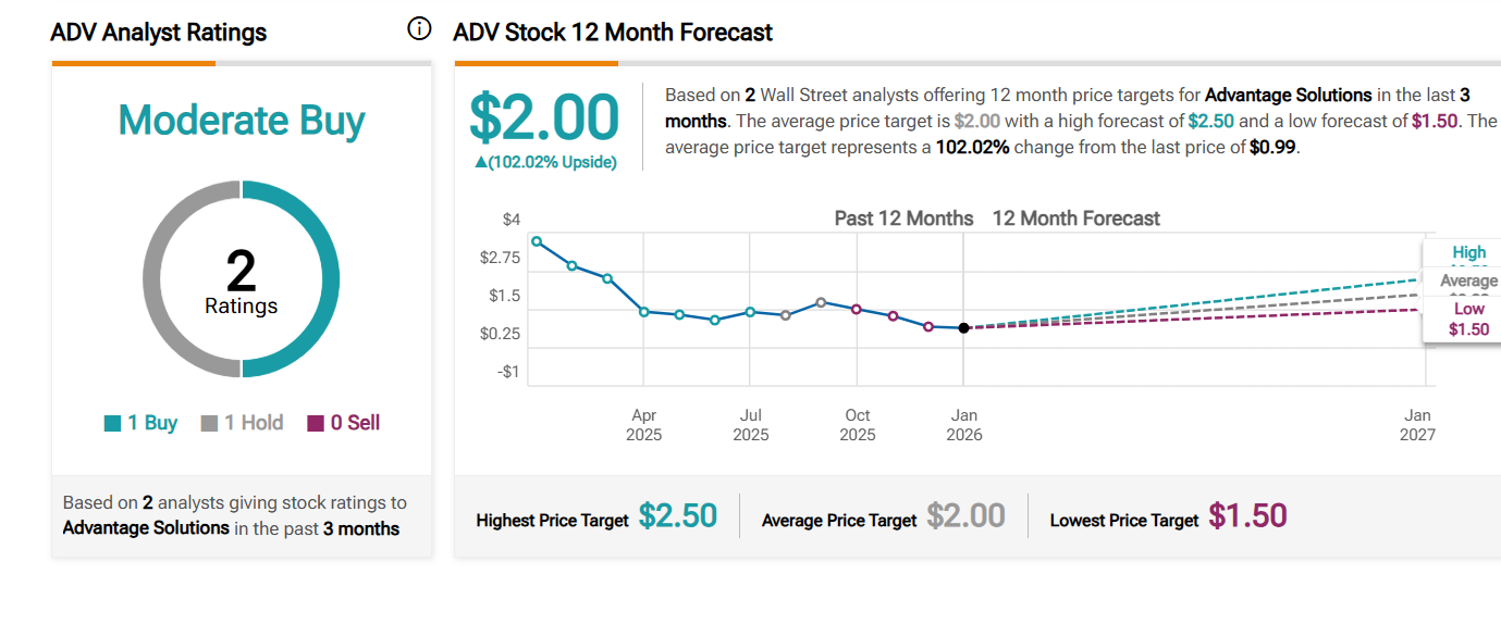 Analyst Consensus: As per TipRanks Analytics, based on 2 Wall Street analysts offering 12-month price targets for ADV in the last 3 months, the stock has an average price target of $2.00, which is nearly 102% upside from current levels.
