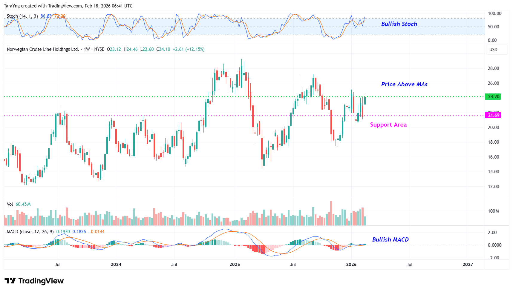 Norwegian Cruise Line Holdings Ltd. (NYSE: NCLH) seems poised for a price surge based on its latest charts. The company operates as a cruise company in North America, Europe, the Asia-Pacific, and internationally. It operates the Norwegian Cruise Line, Oceania Cruises, and Regent Seven Seas Cruises brands.
