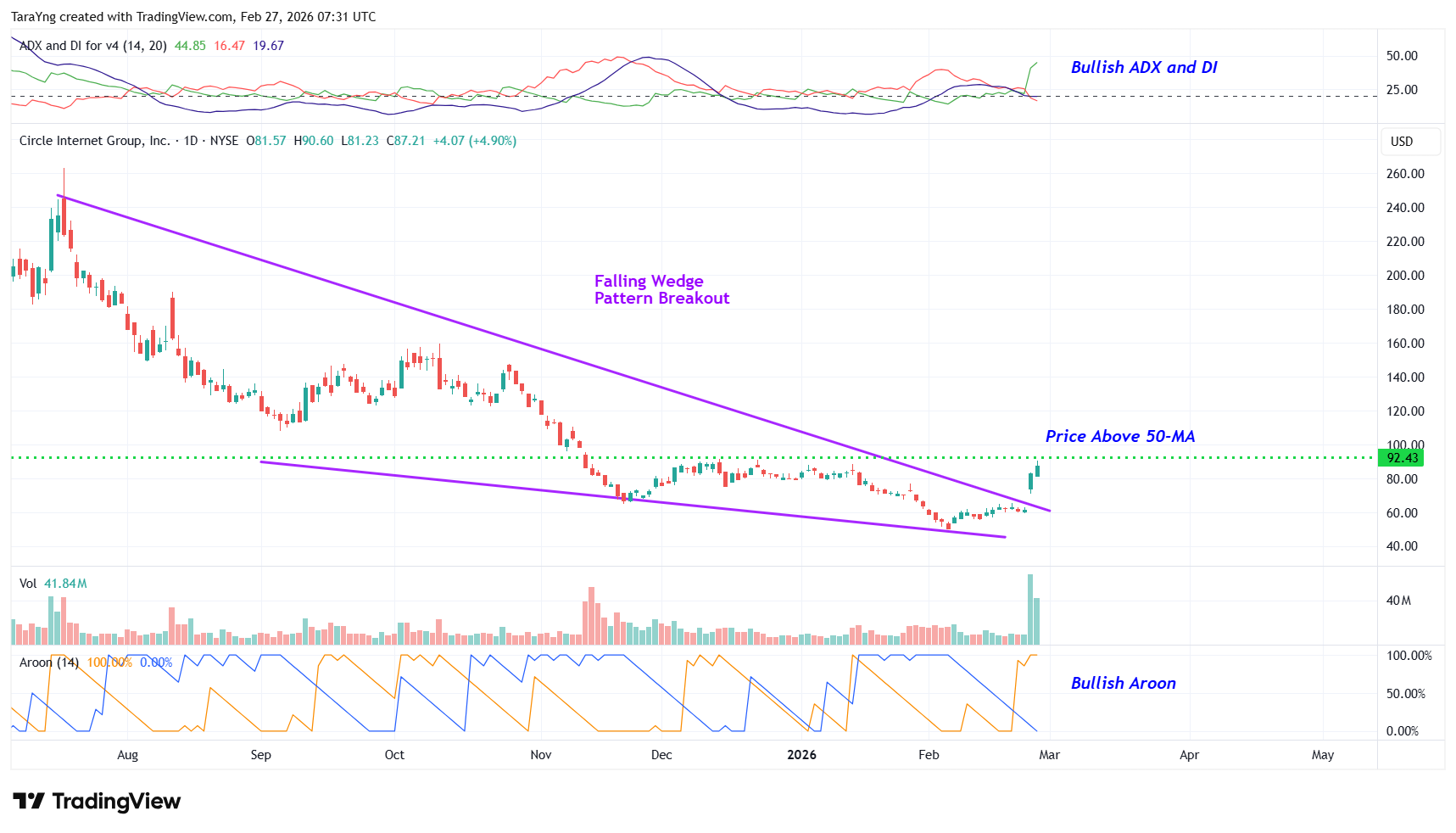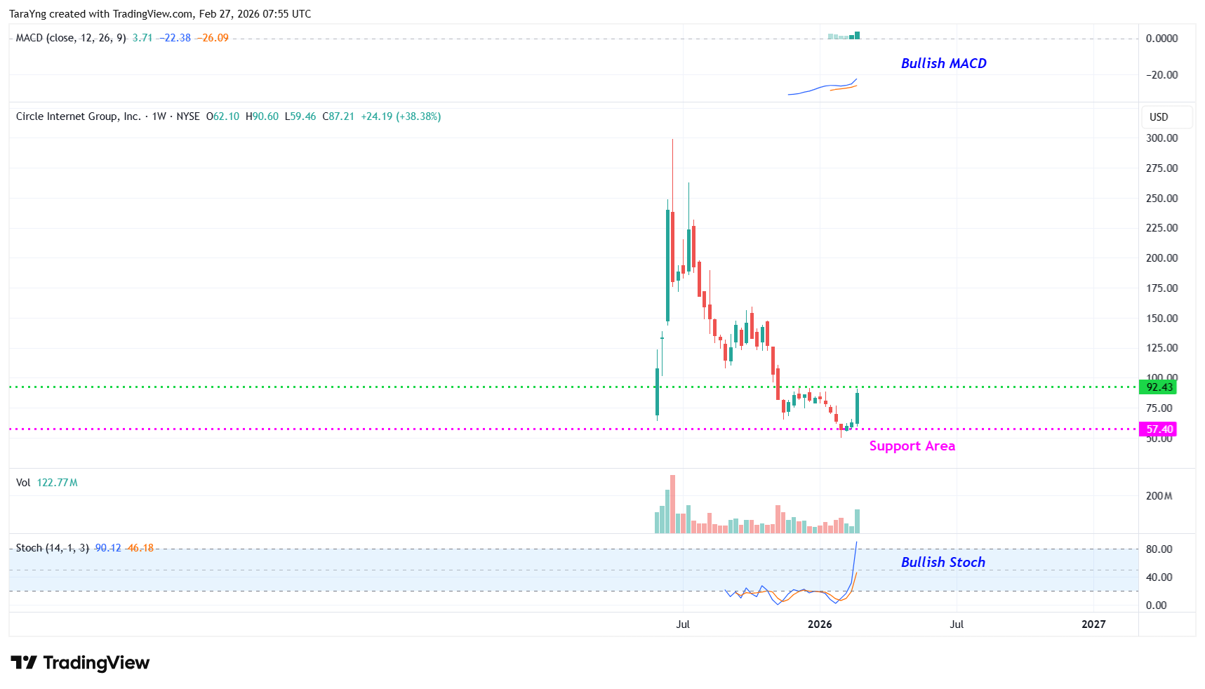 Circle Internet Group (NYSE: CRCL) seems poised for a price surge based on its latest charts. The company operates as a platform, network, and market infrastructure for stablecoin and blockchain applications. The company provides a suite of stablecoins and related products that include a network utility and application platform for organizations to benefit from stablecoins and the internet financial system; and issues a U.S. dollar-denominated stablecoin.