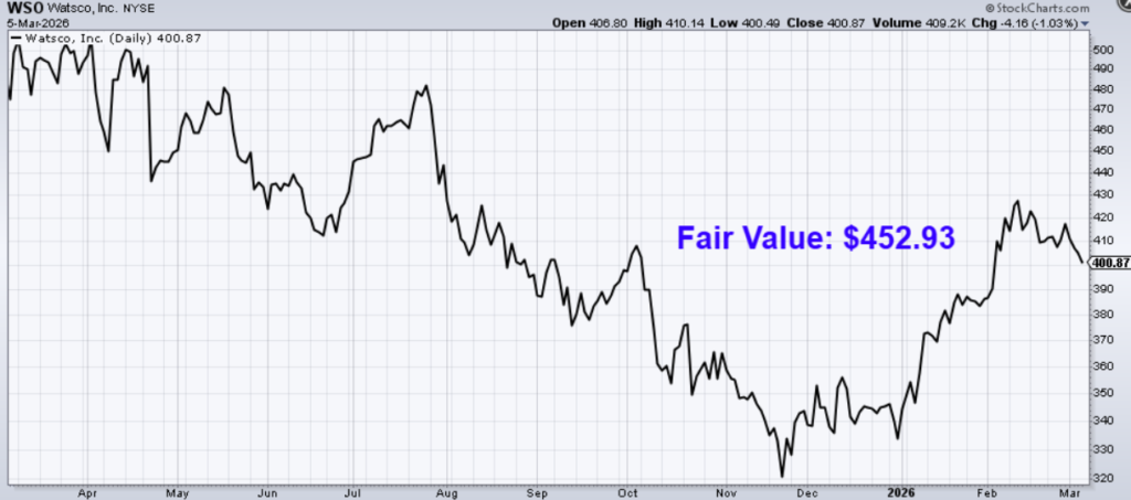 Morningstar rates WSO as a 3-star stock, with a fair value estimate of $444.00.