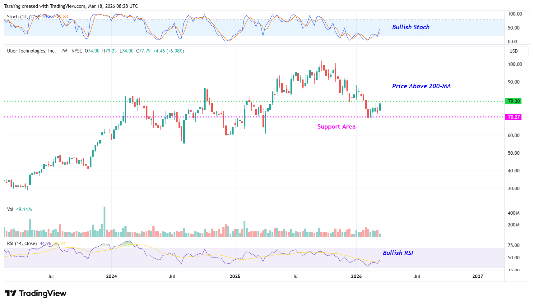 Buy Levels: If you want to get in on this trade, you can purchase shares of UBER above the price of around $79.30.