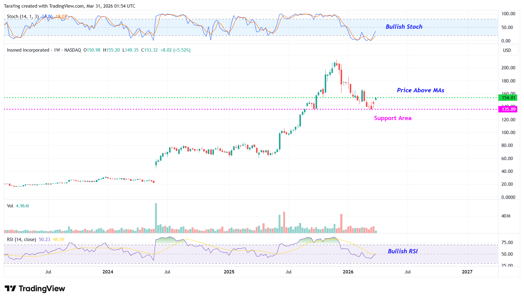 Buy Levels: If you want to get in on this trade, you can purchase shares of INSM above the price of around $154.50.