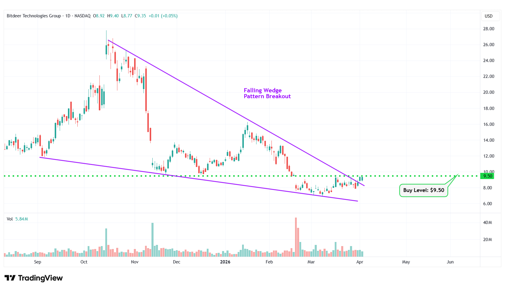 7 Bitdeer Technologies Group NASDAQ: BTDR $9.35 $9.50 Falling Wedge Pattern Breakout