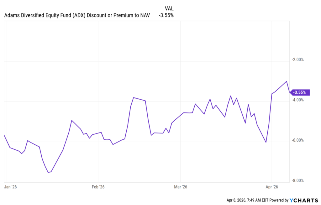 This brings us back to ADX, whose discount to NAV, currently 3.6%, is headed toward premium territory.