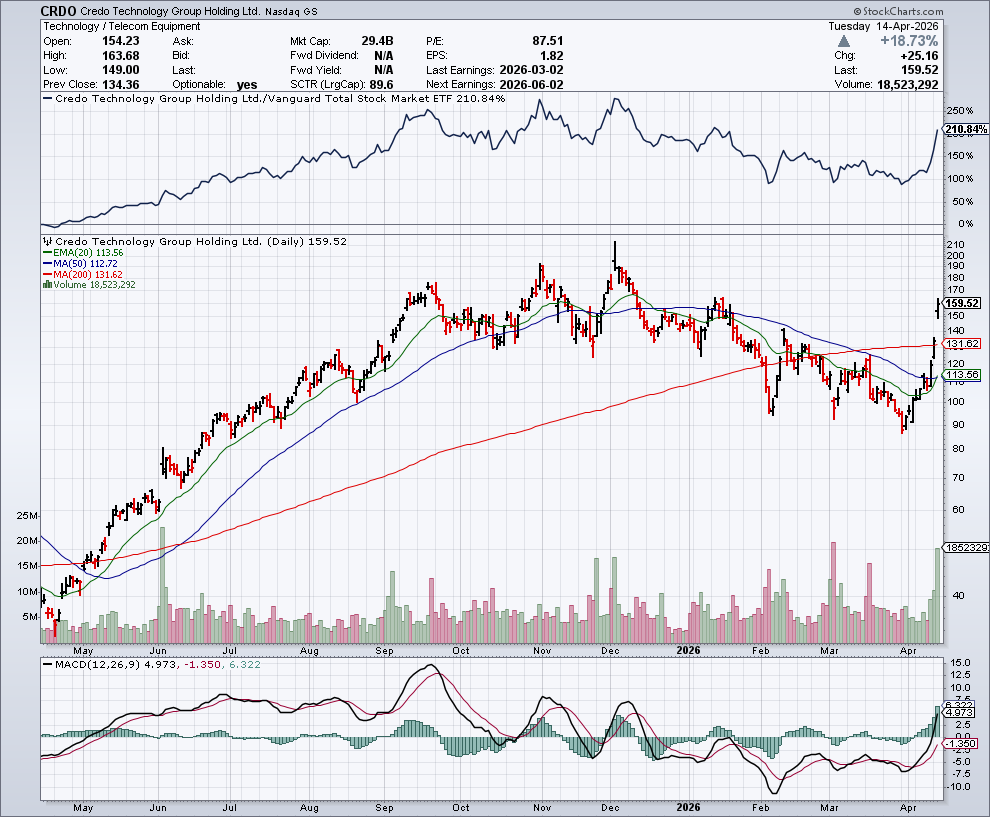 The real story here is Credo’s planned acquisition of DustPhotonics, announced after the close on April 13. The roughly $750 million cash-and-stock deal looks like a strategic push deeper into the optical side of AI infrastructure.