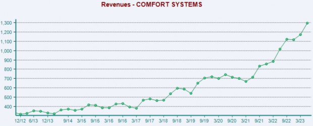 In addition, the company has been a stellar earnings performer, exceeding the Zacks Consensus EPS Estimate by an average of more than 20% across its last four releases. Just in its latest release, Comfort Systems USA posted an 18% EPS beat and reported revenue 7% above expectations.